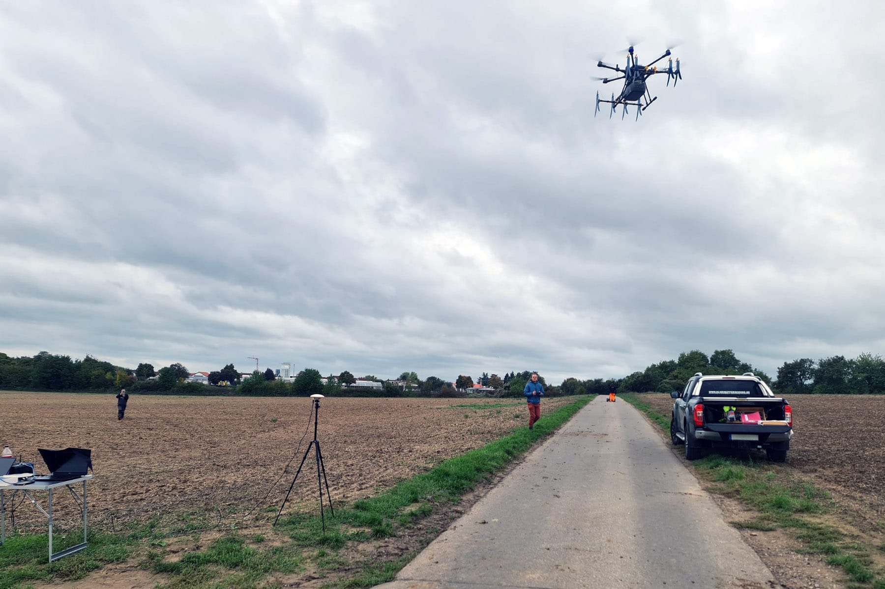 Im Auftrag der IG Heimatforschung Rheinland-Pfalz wurde im Oktober 2025 die Absturzstelle mithilfe modernster Technik nun erneut untersucht. Unser Geo-Bodenradar GS8000 von Volkmann Strassen- und Verkehrstechnik ermöglichte in Zusammenarbeit mit der Firma DeepSeek-Radar (Drohnenbefliegung mit innovativem Radar) die präzise Ortung großflächig verteilter Wrackteile, darunter Turbinen- und Kabinenteile, ganz ohne Eingriff in den Boden.